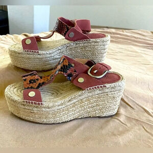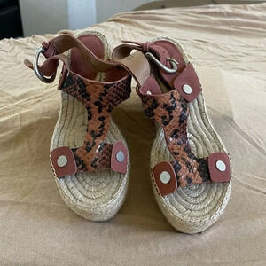 Frye Espadrille Platform Wedges Harper Sling Sandals Faux Snake Size 6