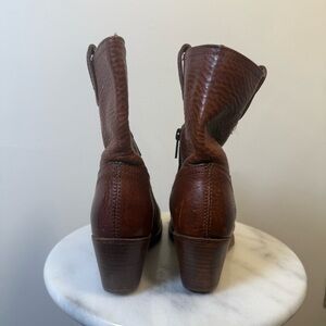 Frye Jane Trapunto Heeled Short Boots Saddle Brown Pull on Side Zip Size 5.5