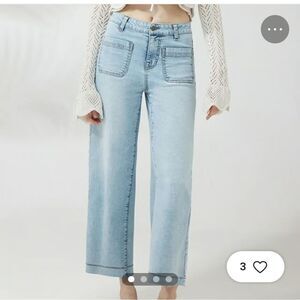Stylish light blue cropped jeans by Frye. Perfect for casual wear. Comfortable and trendy.