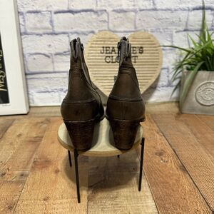 Crafted from Italian oiled leather that’s been washed and antiqued. The Frye Renee short boot gets even better with wear. The pointed toe and stacked heel give it refined shape, while western stitching & well worn look gives it a ruffian edge. Finished off with its signature back seam. A classic must have.