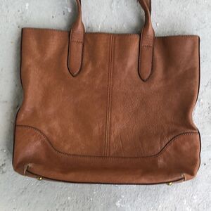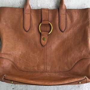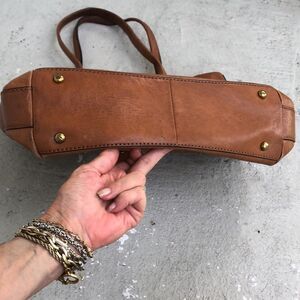 Super nice leather bag but as you see from the picture is corners need reconditioning measuring across the top is 15 x 13 x 4, inside needs a little cleaning in the bottom. Handle drop is 10