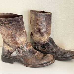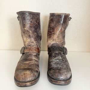 Frye Veronica Distressed Short Leather combat moto Boots in Brown 8.5