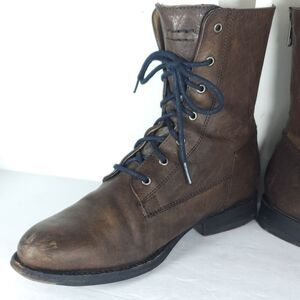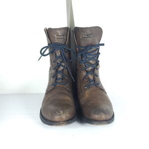 Frye Women's Veronica US6,5B Brown Leather Lace-Up Combat Booties Boots