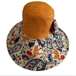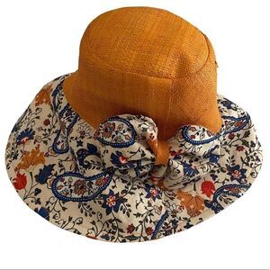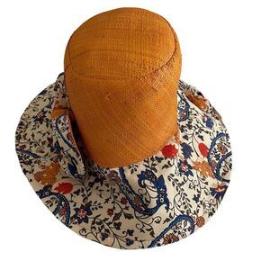 Fsall Selection Raffia Sun Hat Orange Paisley Print One Size