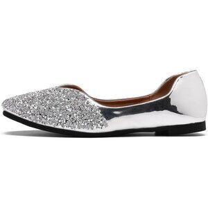 Fsfdamai Flat Shoes Women Silver Leather Square Toe Bling Glitter Casual Shoes