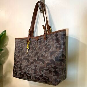Fósil Geometric Large Rachel Tote Brown Purse and Wallet