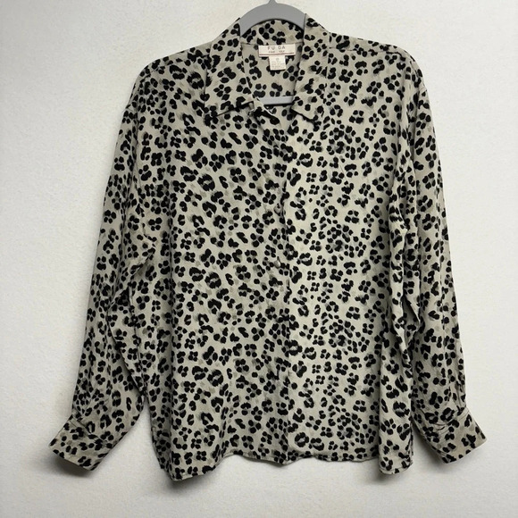 Fu Da Fuda Fine Silk Leopard Button Down Collared Big Cat M Satin