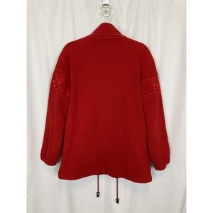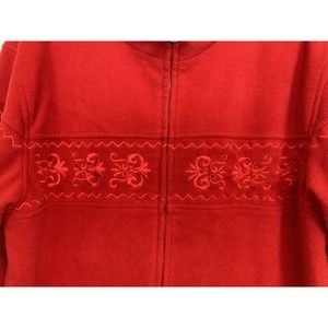 Fu Da New York Women Sz Large Red Full Zip Fleece Jacket Embroidered Holiday EUC