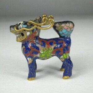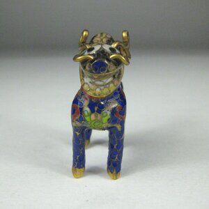 Fu Foo Dog Lion Cloisonne Enamel Chinese 2 inch Figurine Guardian Vintage