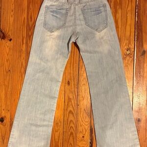 Keywords: Fubu, jeans, light blue, denim, wide leg, Y2K, retro, vintage style, size 27, 90s fashion, streetwear, casual, trendy