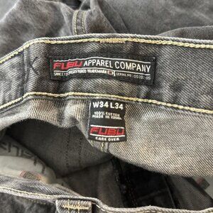 Fubu Jeans Men's Size 38 x 31 Y2K Relaxed Fit Stonewashed Black Denim Jeans