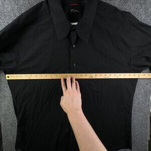 Fubu Shirt Men XL Black Button Up Shirt Long Sleeve Cotton 17.5 34/35 Y2K Woven
