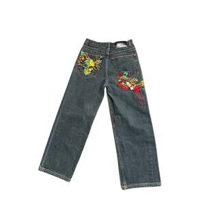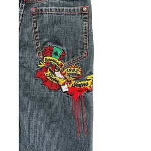 Fubu The Collection Womens Black Jeans Wide Leg Sz 16 Hip Hop Y2K Graffiti.