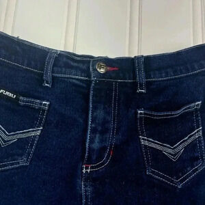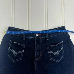 Fubu The Collection y2k 90s Denim Mini Skirt 7/8 Dark Wash Skater Pockets grunge