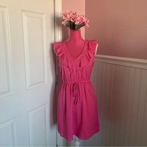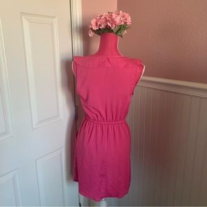 Fuchsia Above Knee Dress, V-Neck with Chiffon Accents, size M, EUC
