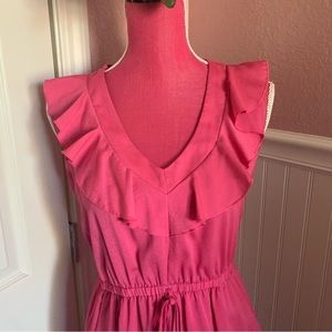 Fuchsia Above Knee Dress, V-Neck with Chiffon Accents, size M