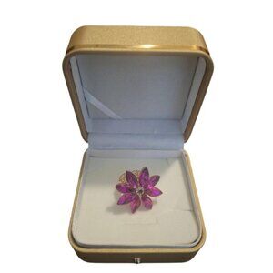Fuchsia & Black Rhinestone Flower Rings