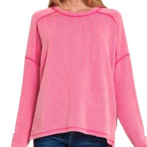 Fuchsia Corded Ribbed Long Sleeve Top