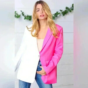 Fuchsia & Cream Silky Half & Half Buttoned Blazer