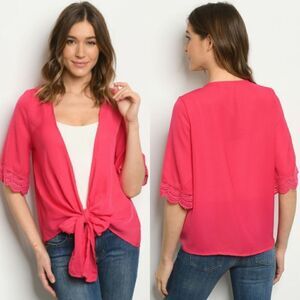 Fuchsia Crochet Sleeve Tie Front Kimono