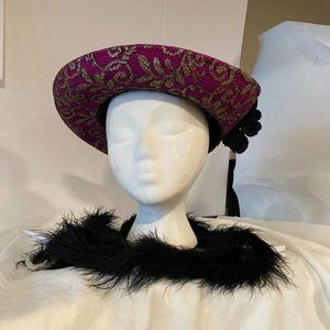 Fuchsia Fedora Hat Medium Brim Scarlet Black Rose w/Gold Trim Autumn/ Winter hat
