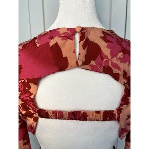 Fuchsia Floral V-Neck Cutout Backless Maxi Dress Size M Medium.