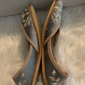 NIB! Step out in style with these elegant gray embroidered shoes from . Perfect for any occasion, these shoes offer both comfort and fashion. Handcrafted. Padded footbed. Breathable. Hand embroidered sequence and thread.