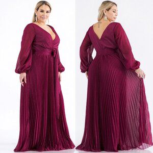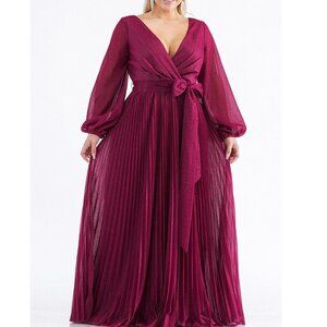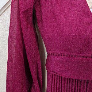 Fuchsia Long Sleeve Metallic Pleated Formal Wedding Evening Dress 4