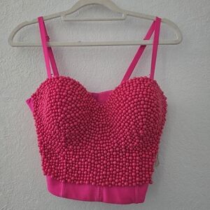 Fuchsia Pearl BeadedPush Up Bustier Bra CropTop