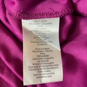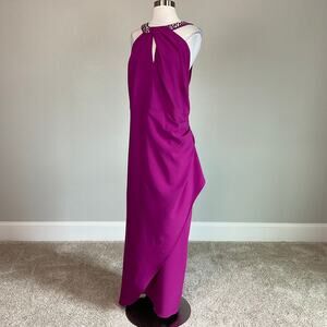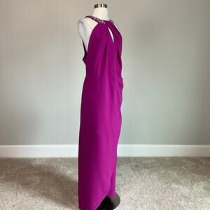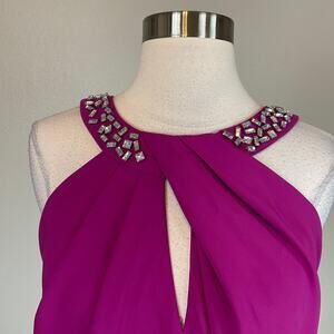 Fuchsia Pink Beaded Halter Evening Gown Size 6 SLNY Sleeveless Cut Out Dress