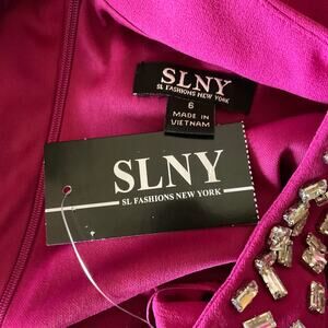 Feel all sorts of gorgeous in this detailed gown by SLNY. It's draped and beaded for the perfect night-out look.