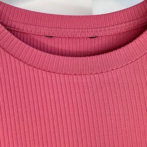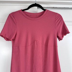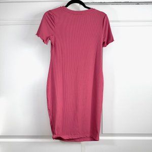 Fuchsia Pink Bodycon Ribbed Mini Short Sleeve Dress