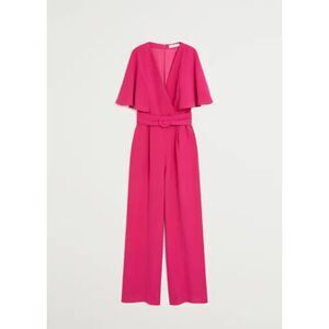 Fuchsia Pink MNG MANGO Wrap V-Neck Flutter Sleeve Belted Pants Jumpsuit (NWT)