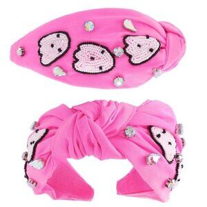 Fuchsia Rhinestone & Beaded Ghosts Knotted Headband