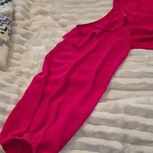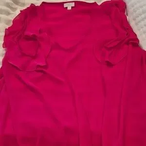 Bright fuchsia blouse with stylish ruffle sleeves. Ideal for a chic look.