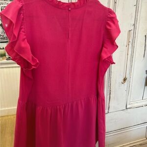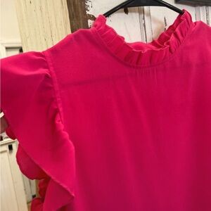 Elevate your style with this elegant fuchsia blouse featuring charming ruffle sleeves. Perfect for any occasion, this top combines comfort and sophistication.