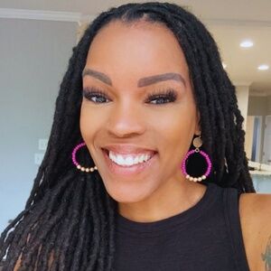 Fuchsia Wood Beaded Circle Earrings