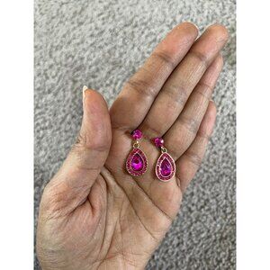 Fuchsia teardrop earrings , small crystal hot pink gold tone tear drop earrings