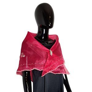 Alampay is a Filipino lace-like Embroidered Shawls also known as Panuelo in the Philippines. Alampay is part of a four-piece traditional Maria Clara gown that's considered a national dress for Filipina women. It's meant to be flattened with pleated sleeves creating a semi-circle above the shoulder and worn over a camisa or any dress for a touch of tradition.