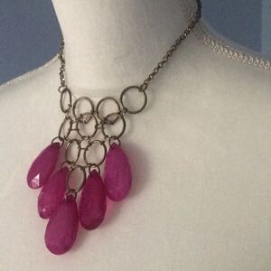This fuchsia statement necklace has cut stones to make this shine!! Matching earrings make the perfect set. Awesome color for summer!