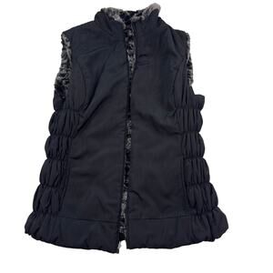 Fuda Faux Fur Nylon Ruched Reversible Outdoor Vest Women's Size Large