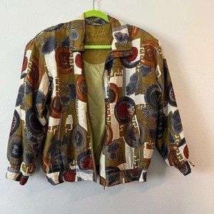 Fuda International Vintage 100% Silk Bomber Jacket Womens Size Small