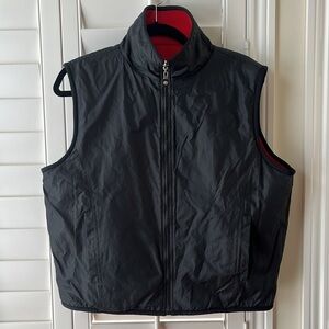 Fuda Womens Size L Reversible Zip Up Vest Black Silk Red Fleece Zip Pockets