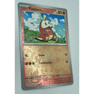 Get your hands on the fiery Fuecoco Scarlet & Violet card from the Pokemon TCG! This stunning card features a powerful fire attribute and reverse holo finish, making it a must-have for any serious collector. With an impressive 80 HP and basic stage, Fuecoco is ready to battle alongside your other Pokemon.