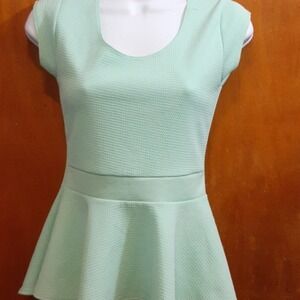 Fuego Women's Top Flare Elastic Waist Size Small Mint Green Boho