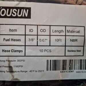 Quality 3/8-inch fuel line. 10 feet rated SAE J30R7 300 psi with 10 quality hose clamps. New in sealed retail bag. Interested, make an offer. From a smoke and pet hair free home. Fast shipping.