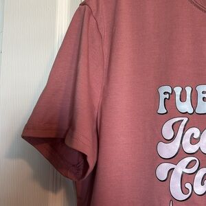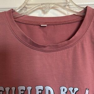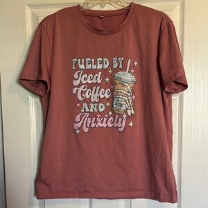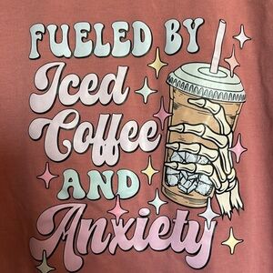 Fueled By Iced Coffee And Anxiety women’s pink graphic t-shirt size XL