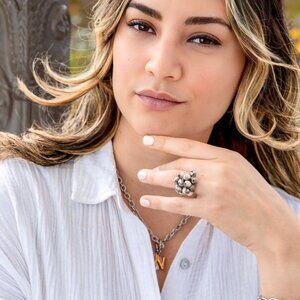The "Fuente" ring is a one-of-a-kind handmade piece that honors the pure and everlasting love of a mother. Inspired by the concept of origin and life, this piece symbolizes the unbreakable and eternal bond we share with the one who gave us everything.