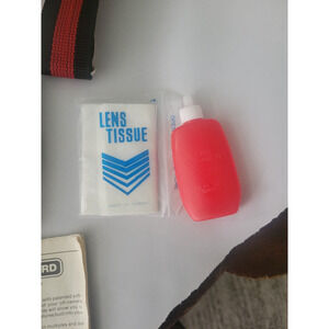 Lots of goodies in here, the cleaning fluid bottle is empty. you get everything you see, even has film in it still from the estate we bought it from. nice kit, ready to go make memories. comes with a bag, the bag is a bit faded and a little dirty on the outside, everything else looks to be very well maintained.