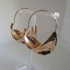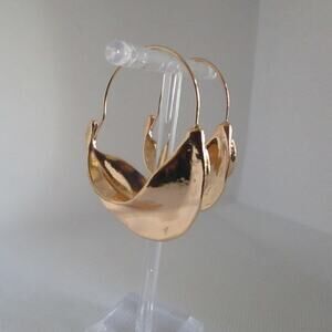 Bold yet minimal ✨ These sculptural gold tone hoop earrings are giving art gallery chic. Featuring an abstract, organic shape with a high-shine finish, they’re medium weight and statement-worthy — perfect for elevating any outfit. Excellent pre-owned condition, unmarked -- not branded
